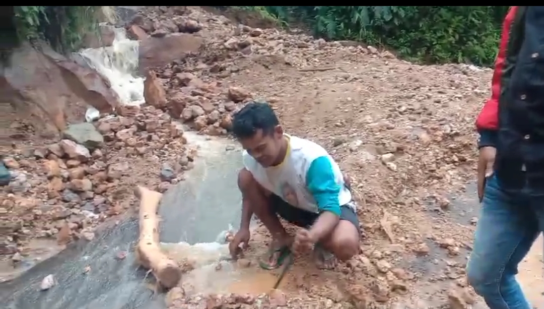 Akibatnya, akses jalan tertutup material longsoran berupa tanah dan batu, sehingga kendaraan sulit melintas. Bahkan, kendaraan roda empat sama tidak dapat melewati jalur tersebut.