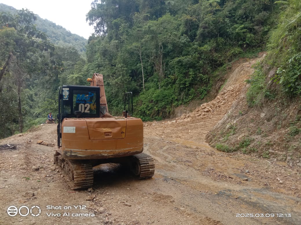 Bencana longsor yang terjadi akibat hujan deras pada Sabtu, 8 Maret 2025, menyebabkan tumpukan tanah dan bebatuan menutupi badan jalan. Kondisi ini menghambat mobilitas warga serta distribusi logistik ke daerah terdampak.